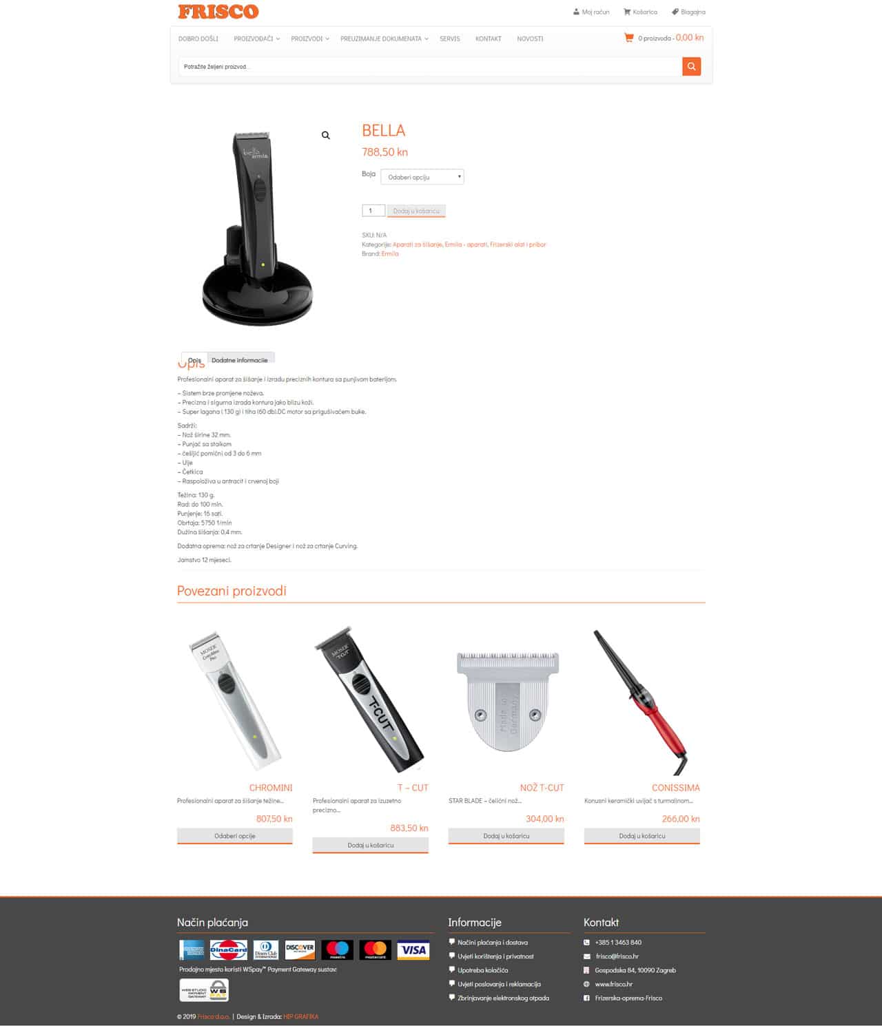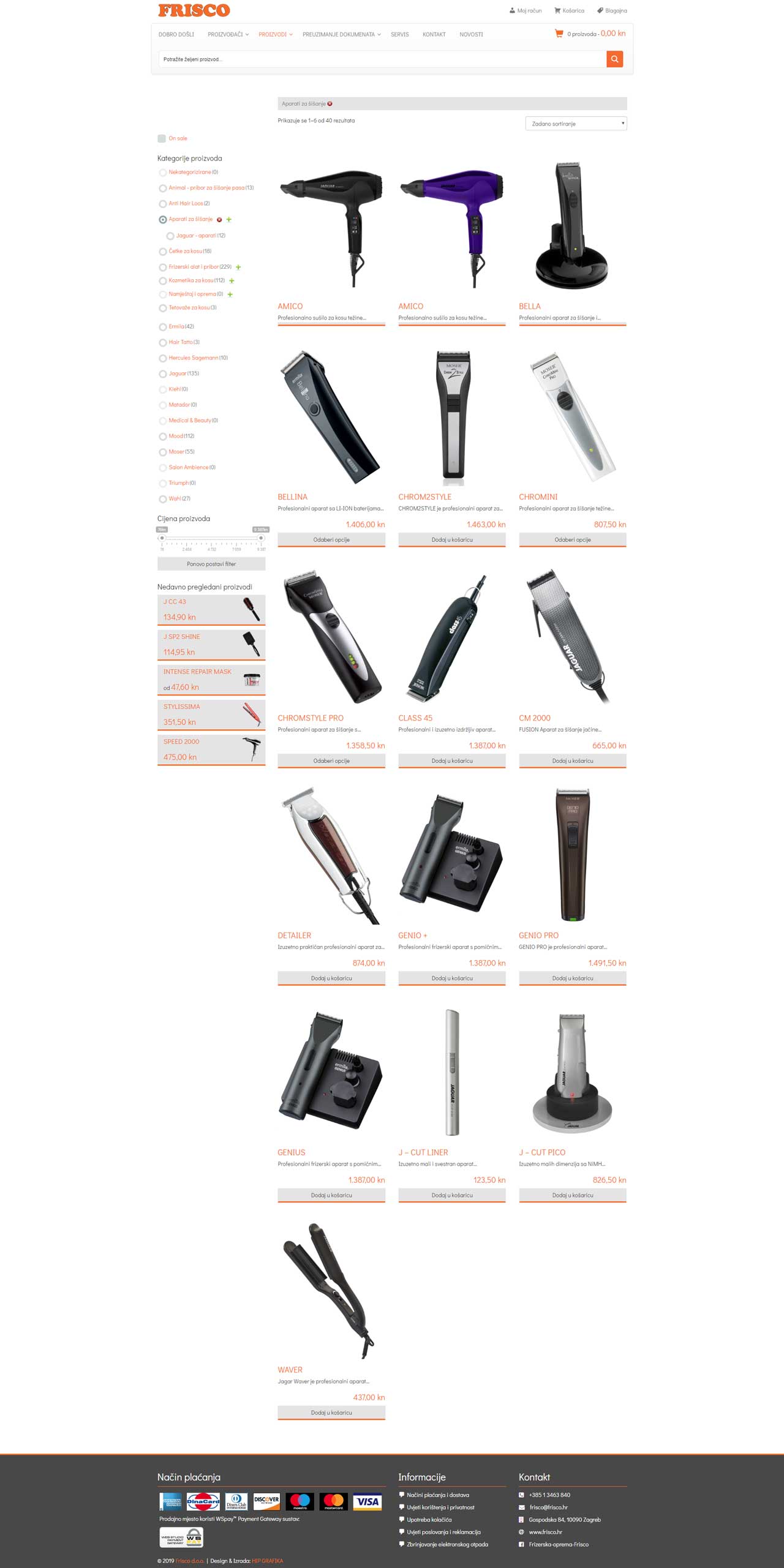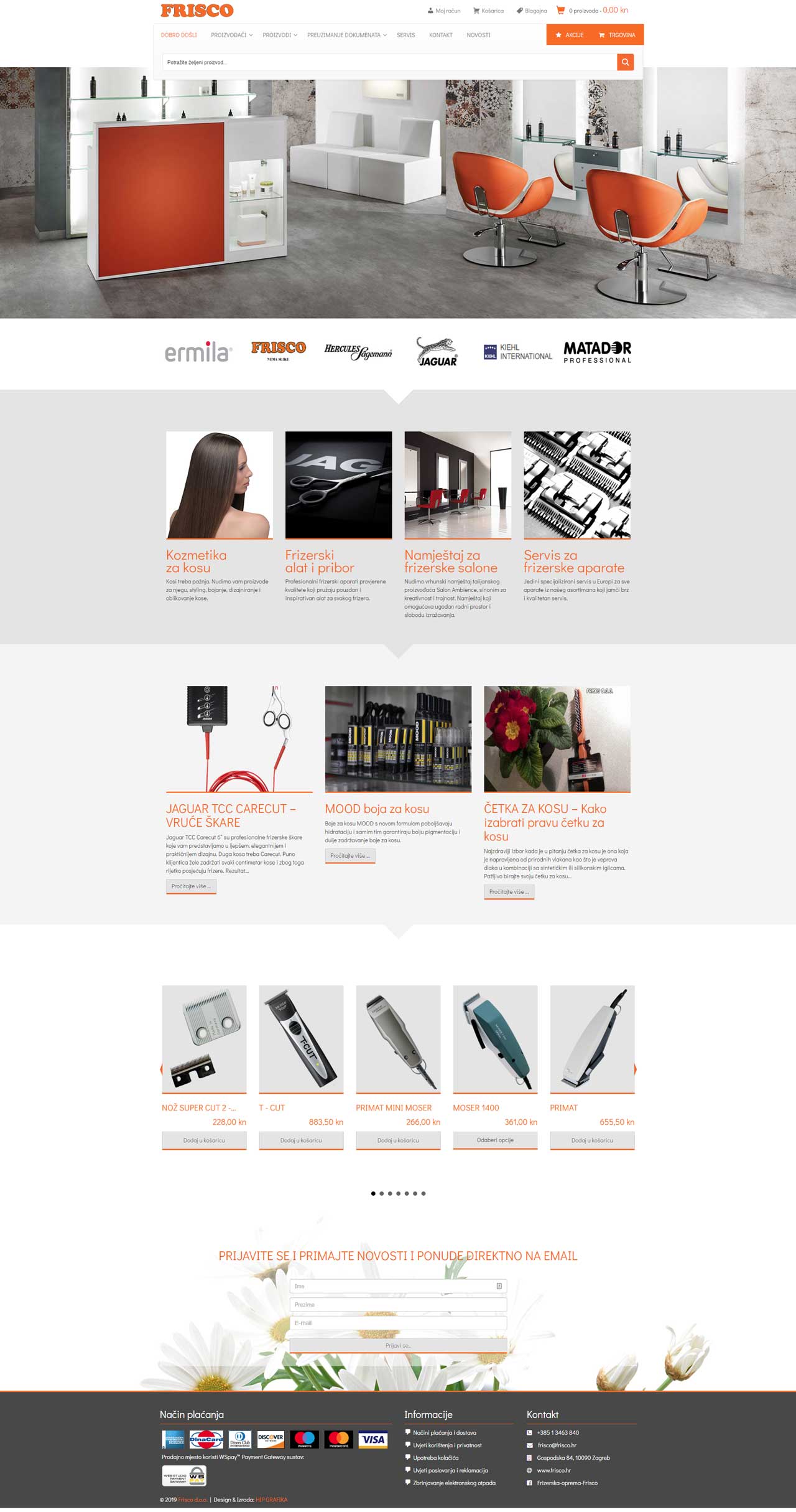 Frisco d.o.o. nudi vrlo veliki asortiman frizerske opreme i potrepština za frizerske salone.